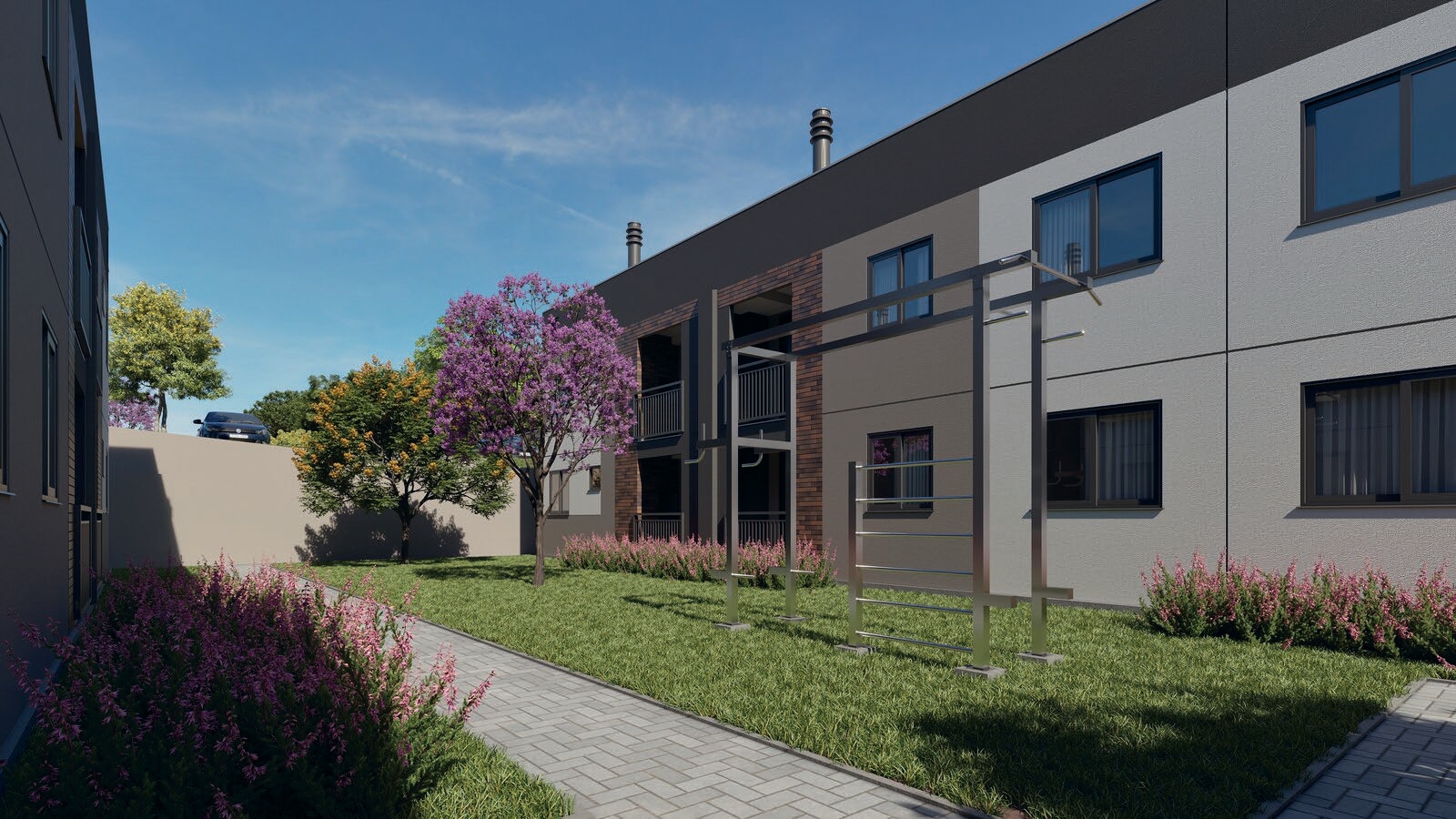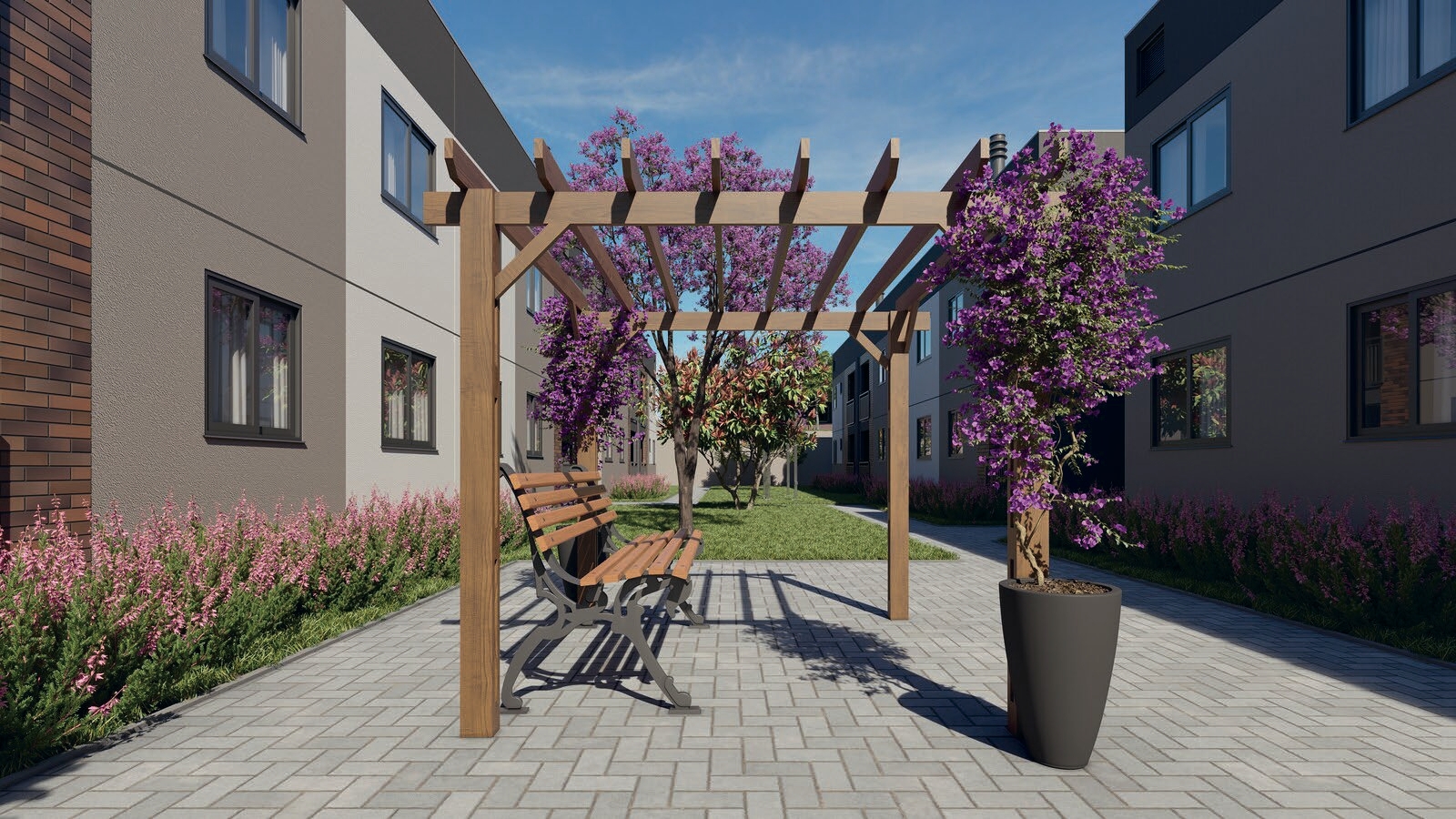 O empreendimento é composto por 8 blocos e 160 apartamentos, com plantas de 42 m² a 43 m², todos com 2 dormitórios e sacada com churrasqueira. Há ainda opções garden com áreas externas privativas que chegam a mais de 46 m², perfeitas para quem deseja mais espaço e contato com a natureza.