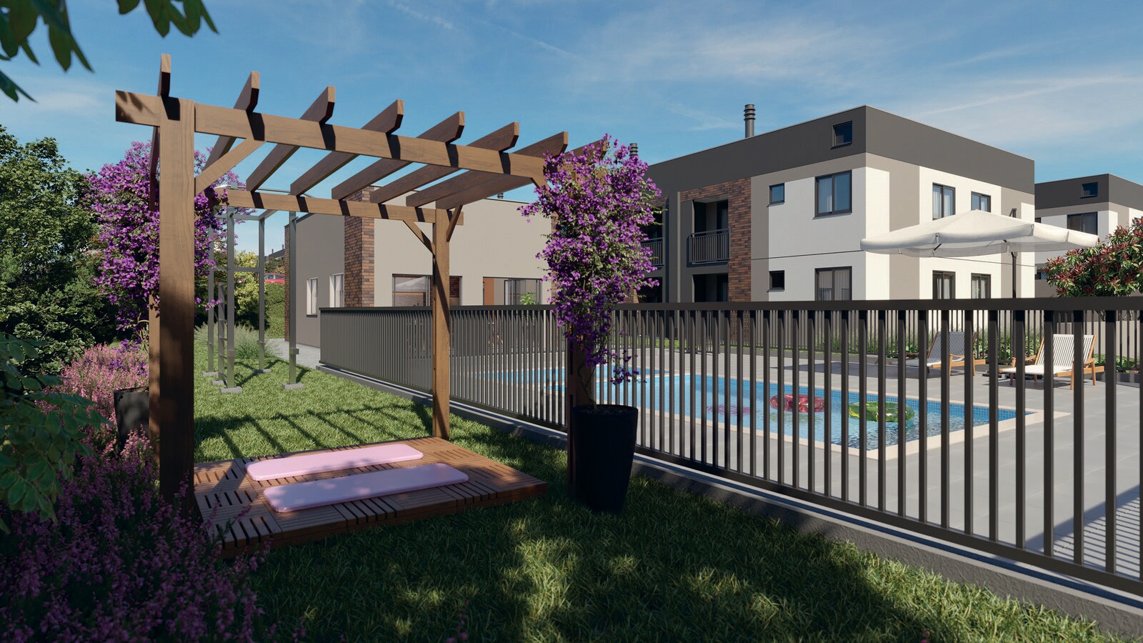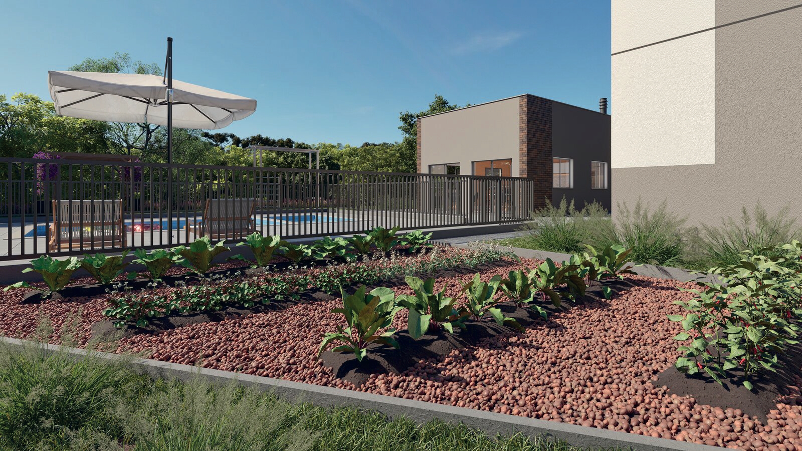 Aqui você encontra uma área de lazer completa, com piscina adulto e infantil, quadra poliesportiva, academia ao ar livre, salão de festas, playground, pet place, horta comunitária, espaço zen e redário. Um verdadeiro refúgio para quem busca qualidade de vida, convivência e momentos especiais com a família.