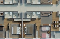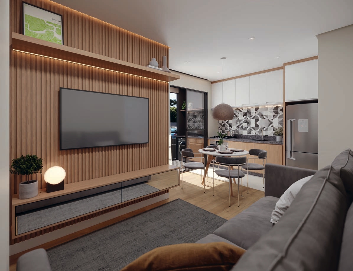 Os apartamentos contam com 2 dormitórios, sacada com churrasqueira e plantas inteligentes de 42 m² a 43 m², além das opções garden com áreas externas privativas de até 47 m². Cada detalhe foi pensado para trazer funcionalidade e conforto ao seu dia a dia.