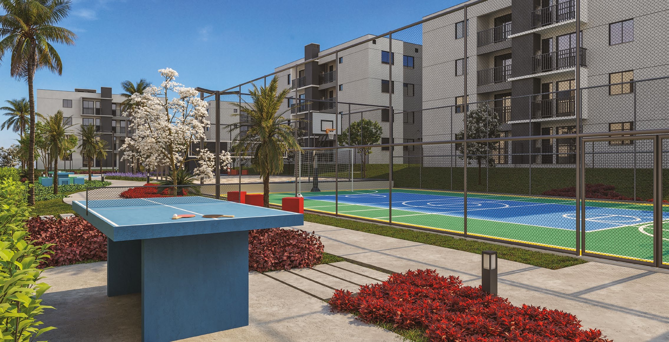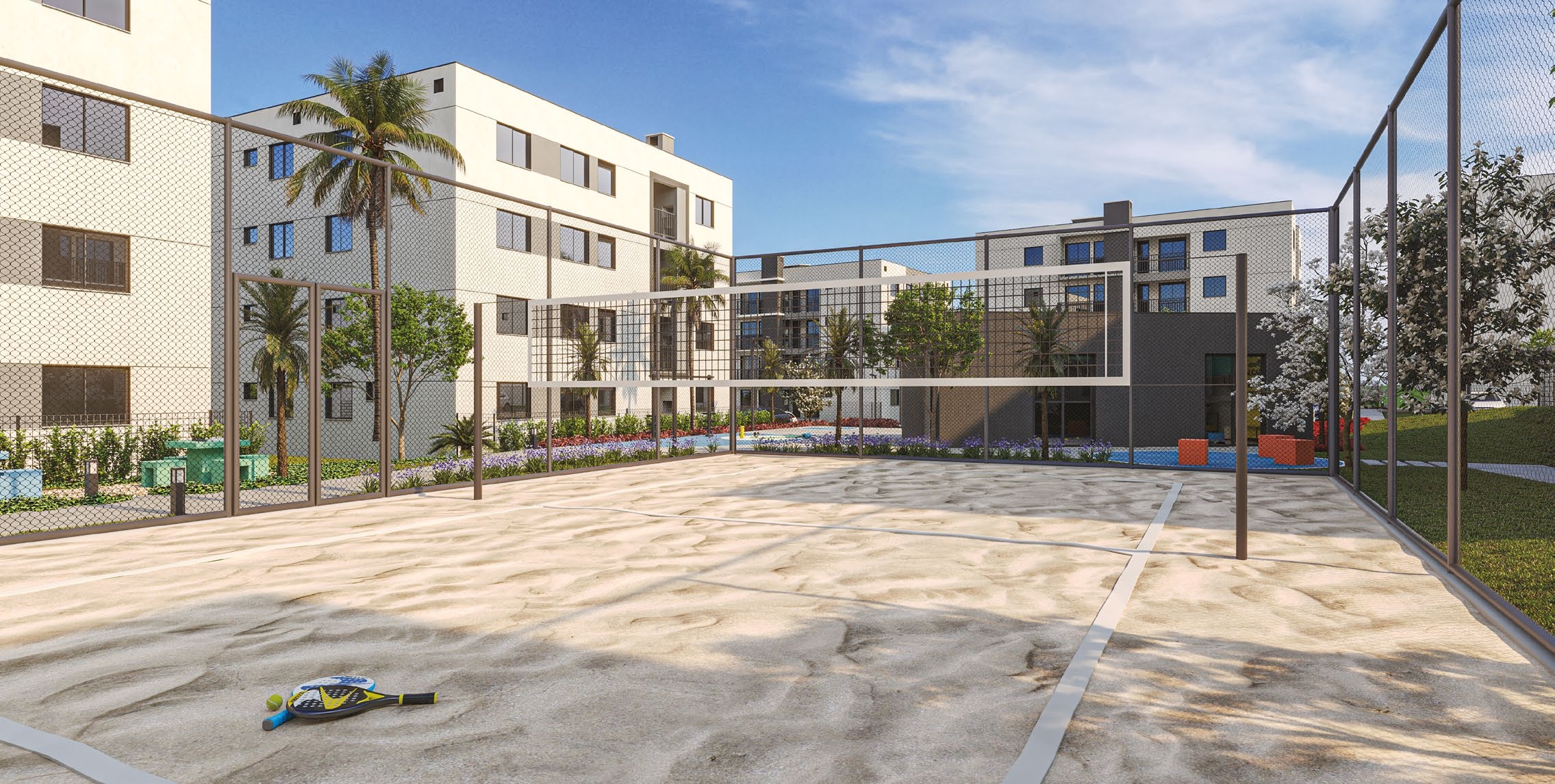 O condomínio oferece uma ampla estrutura de lazer, com mais de 15 opções exclusivas: salão de festas, quiosques com churrasqueiras, quadra esportiva, quadra de beach tennis, playground, espaço pet, academia indoor, espaço crosstraining, redário, horta e pomar, bicicletário, praças de convivência e pista de caminhada. Tudo isso em um ambiente arborizado e planejado para proporcionar momentos únicos em família.