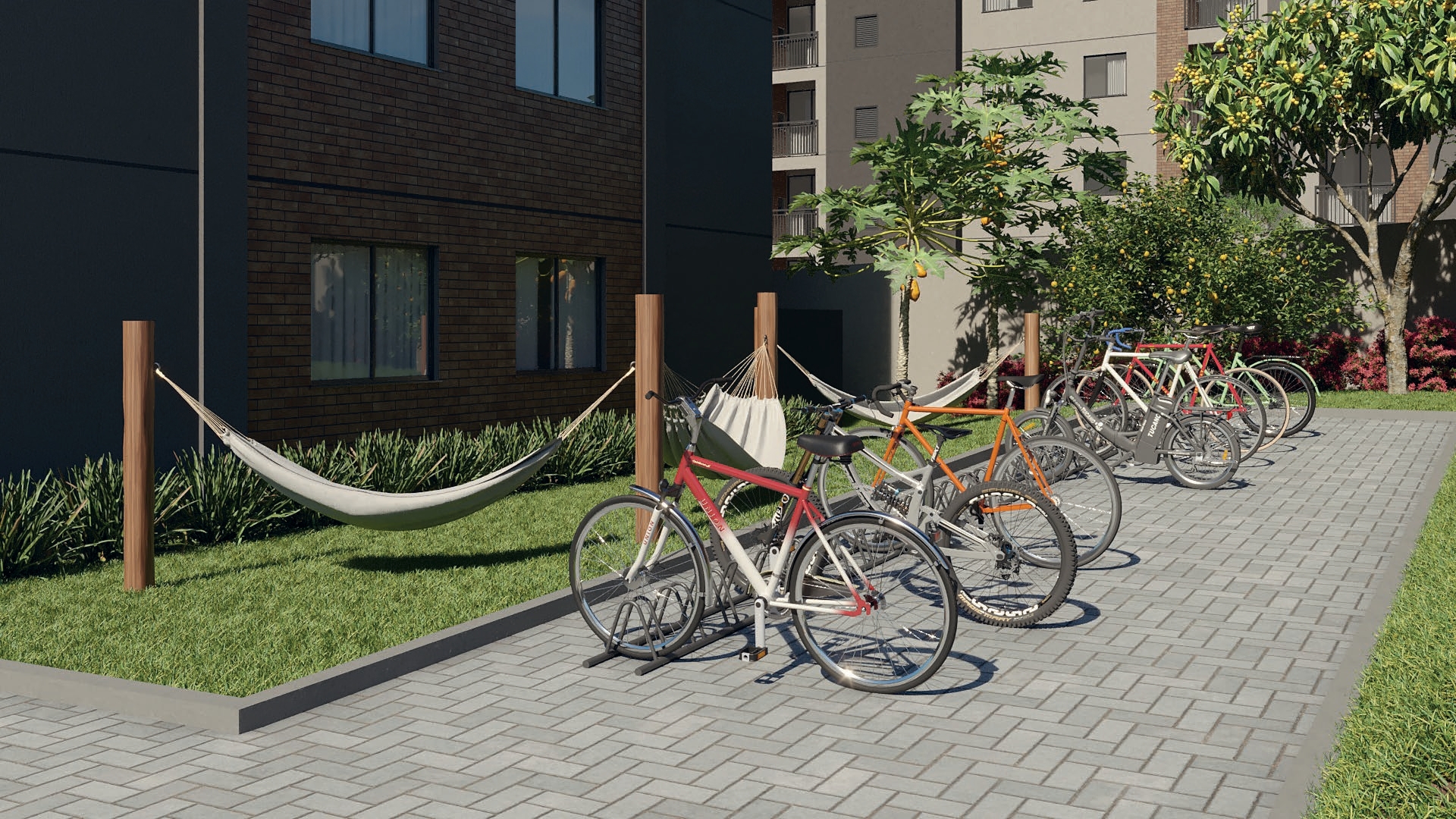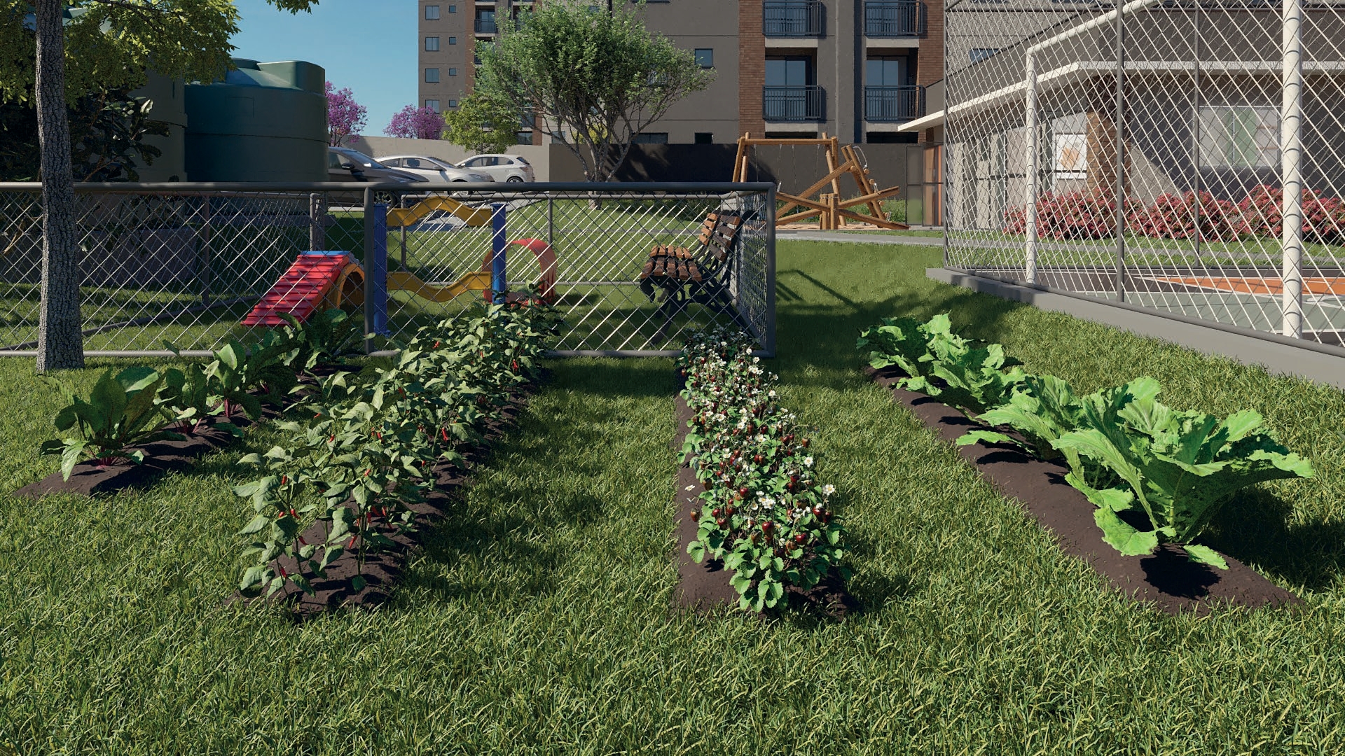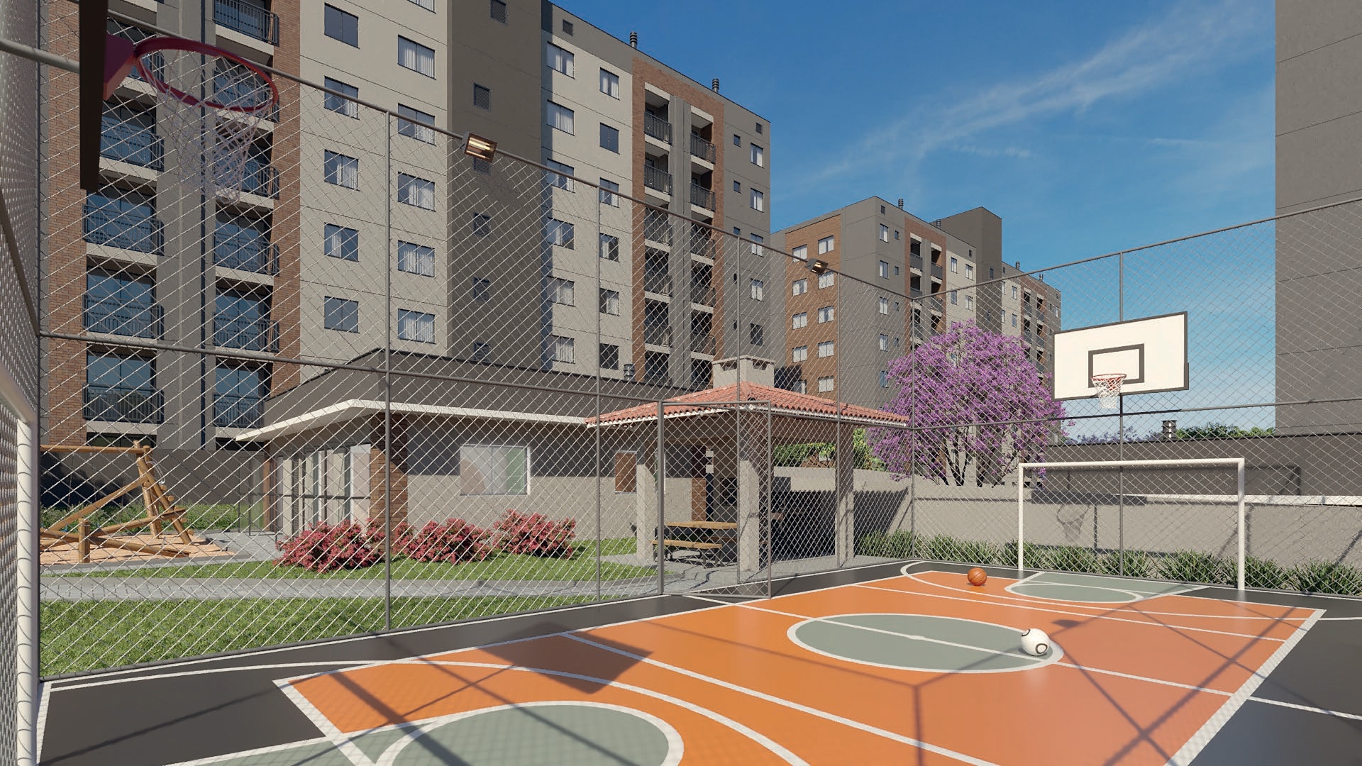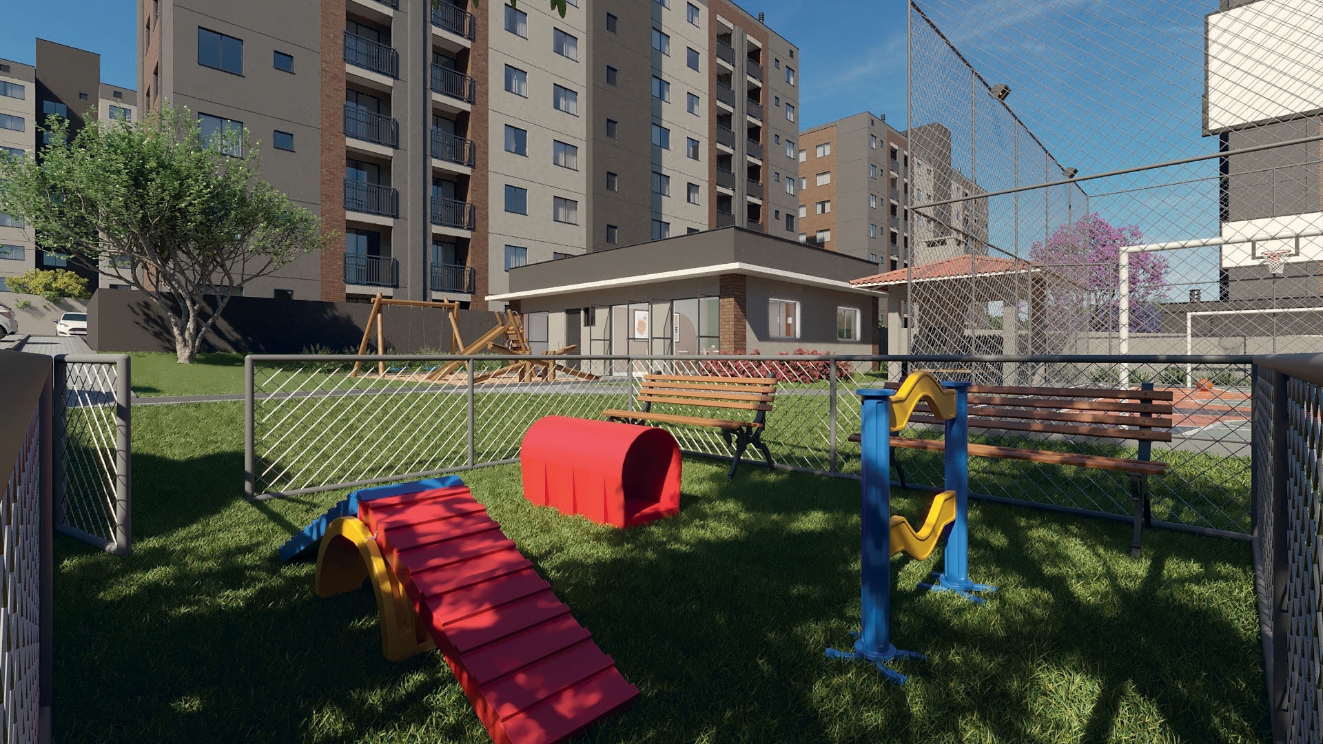 Dentro do condomínio, você encontrará diferenciais que fazem toda a diferença no dia a dia: salão de festas, quiosque gourmet, mini quadra poliesportiva, academia, playground, pet place, horta, pomar, espaço zen, redário, bicicletário e muito mais