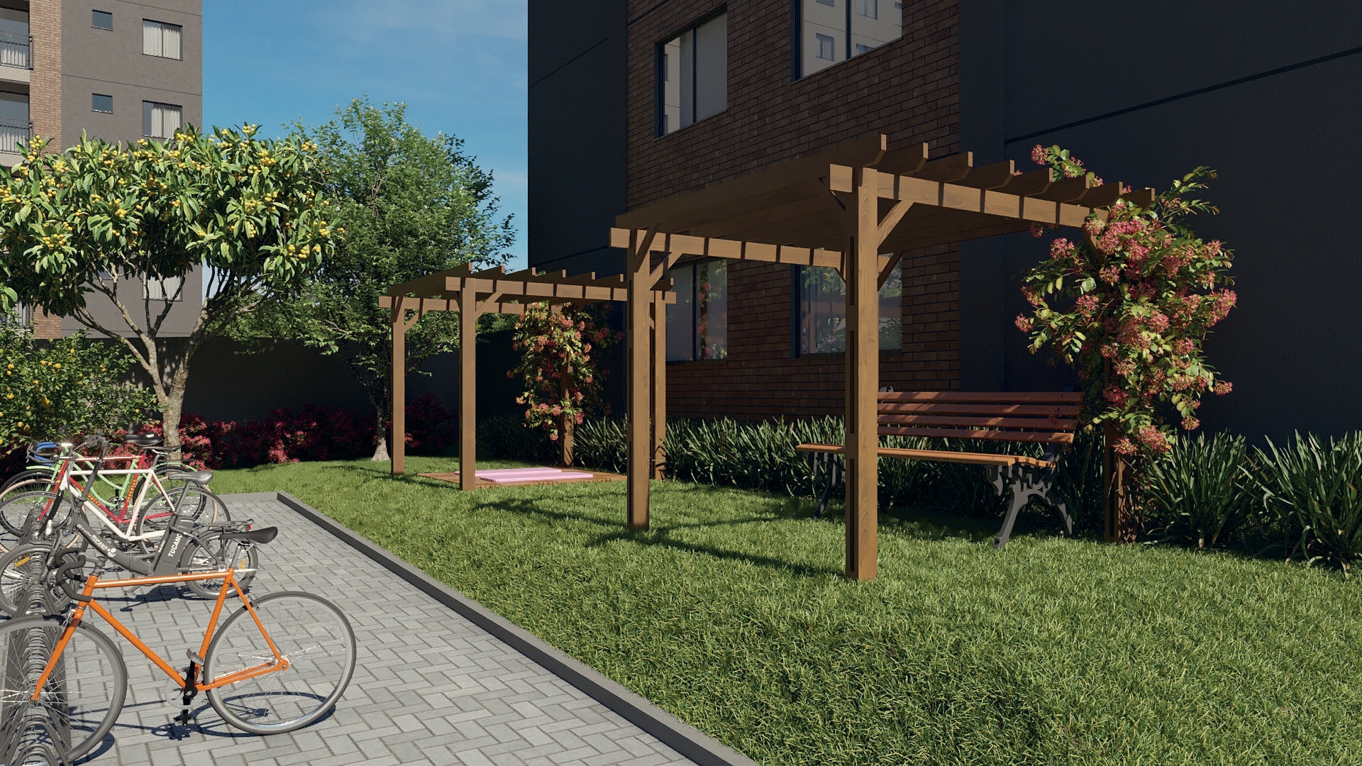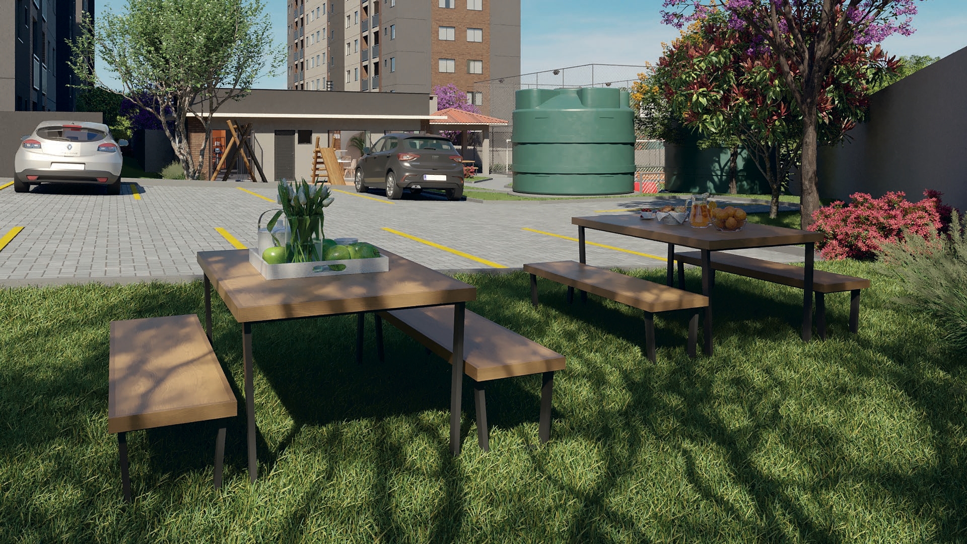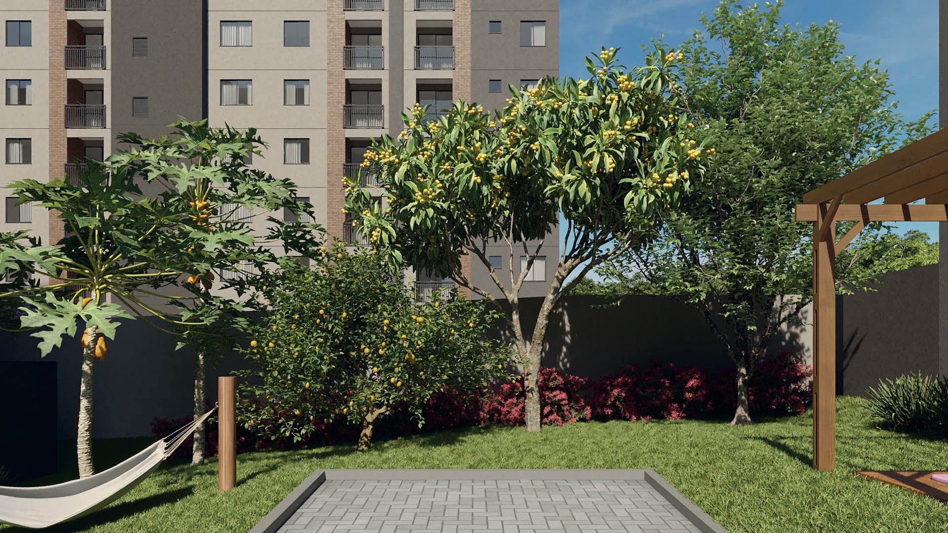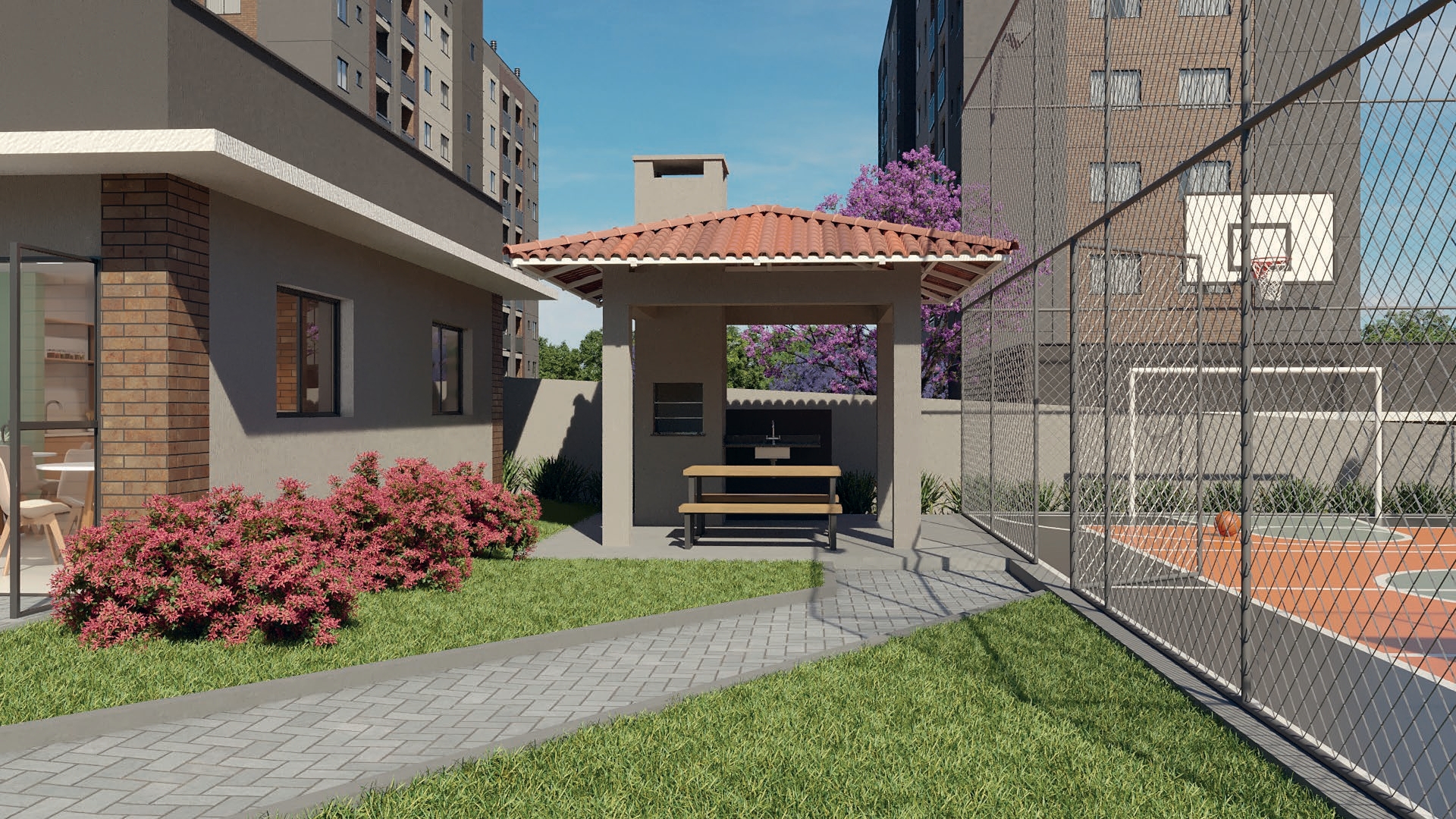 Dentro do condomínio, você encontrará diferenciais que fazem toda a diferença no dia a dia: salão de festas, quiosque gourmet, mini quadra poliesportiva, academia, playground, pet place, horta, pomar, espaço zen, redário, bicicletário e muito mais