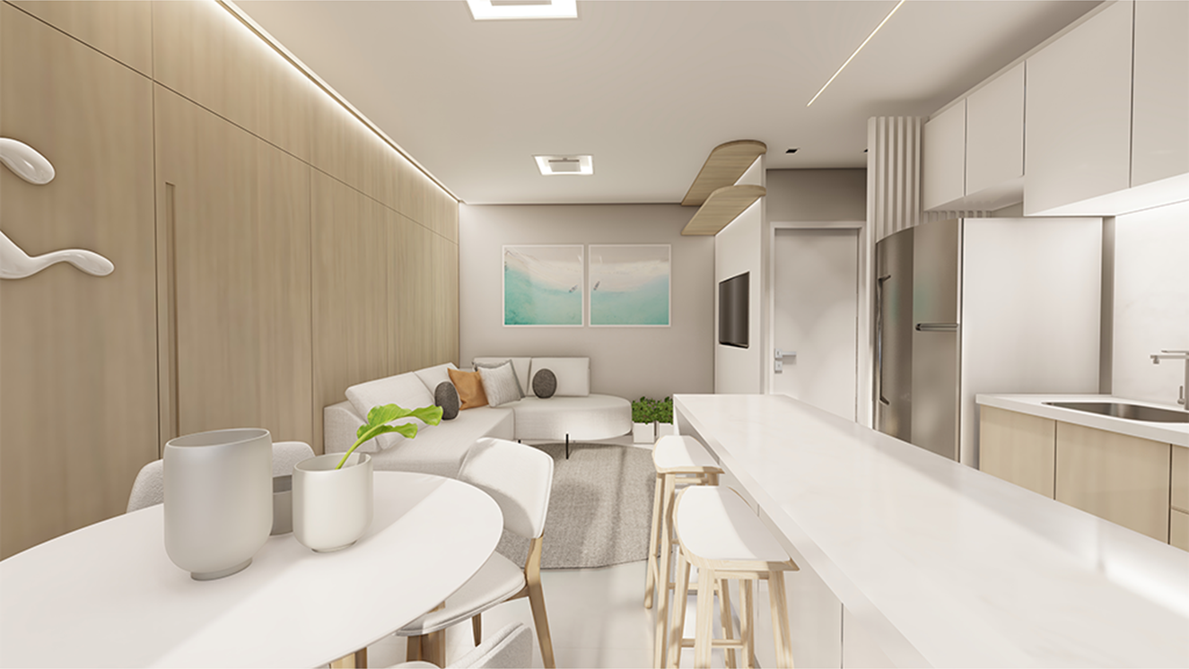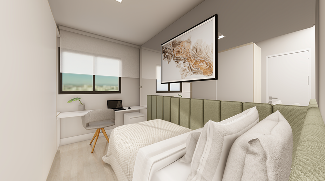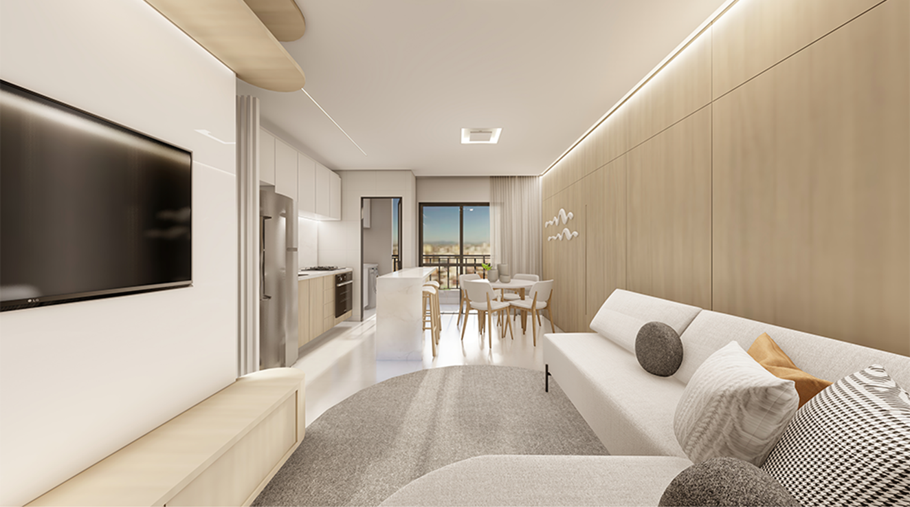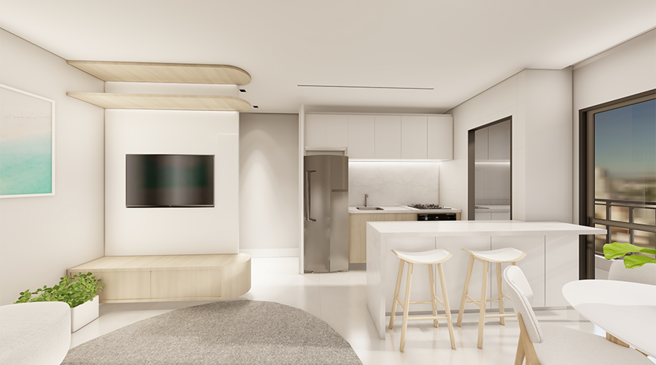 Composto por 24 apartamentos em um único bloco, o Azadi traz plantas inteligentes de 45 m² a 47 m², distribuídas em 2 dormitórios com sacada e churrasqueira. São 6 unidades por andar, com ambientes planejados para oferecer conforto, praticidade e bem-estar.
