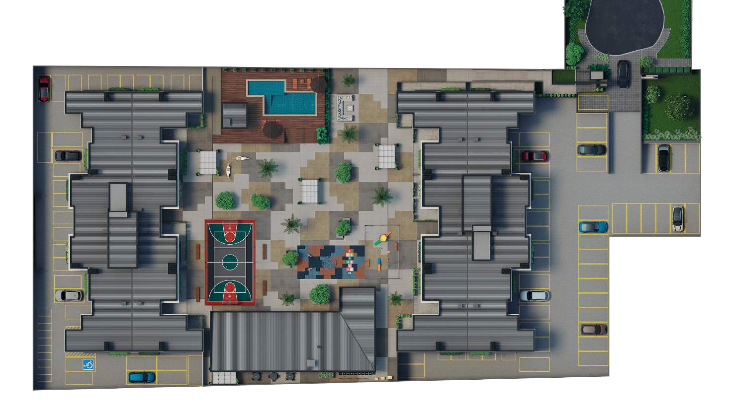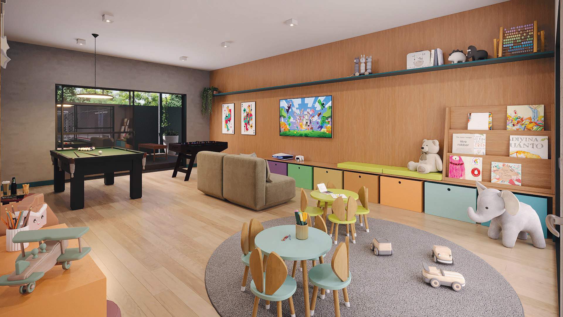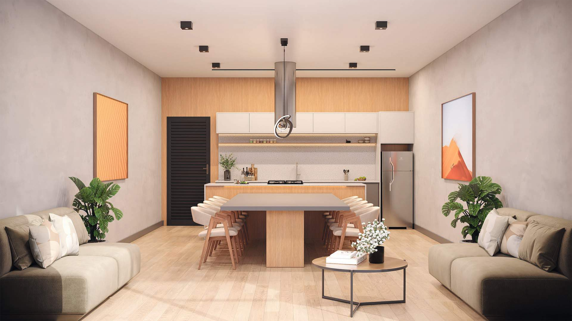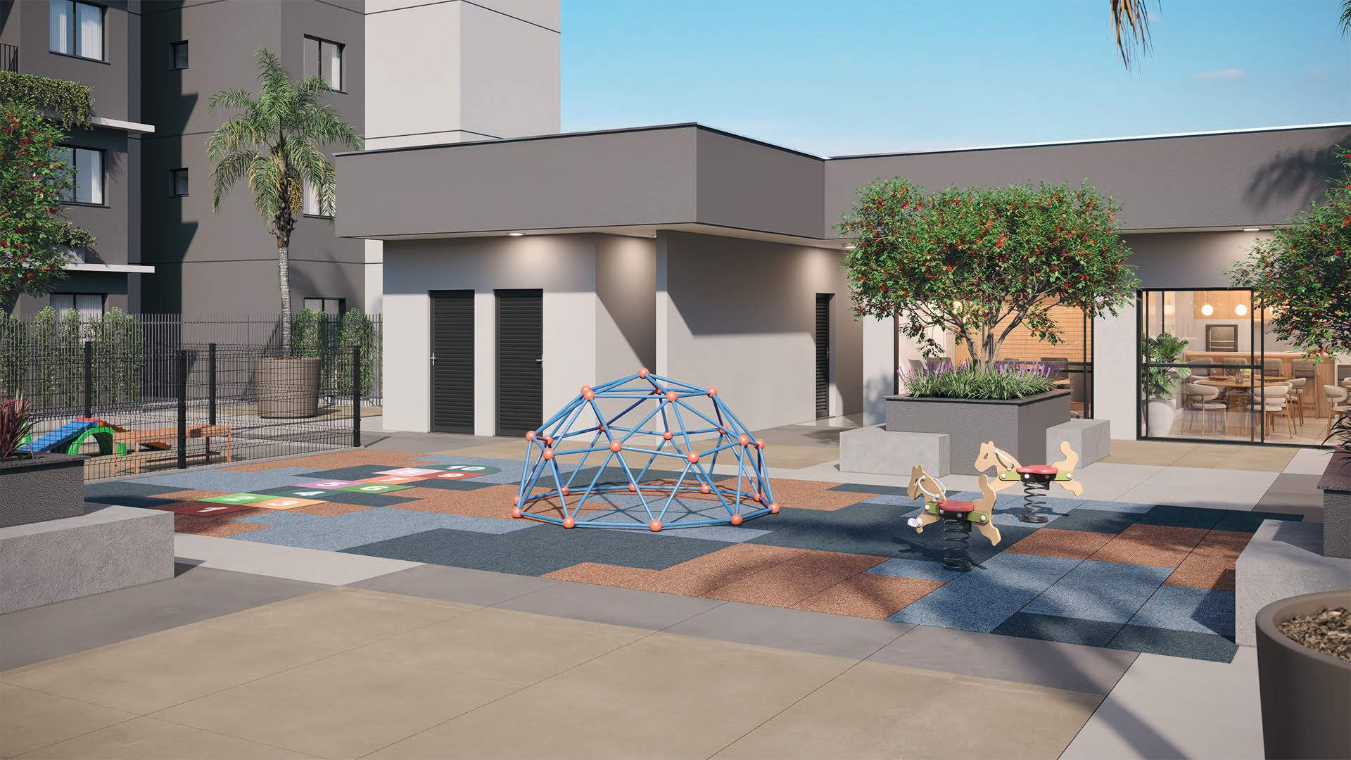 A área comum foi pensada para integrar lazer, convivência e bem-estar: salão de festas, espaço gourmet, coworking, bicicletário, lavanderia compartilhada, espaço fitness e rooftop com área de convivência. Tudo isso em um ambiente moderno e seguro, com sistema de controle de acesso.