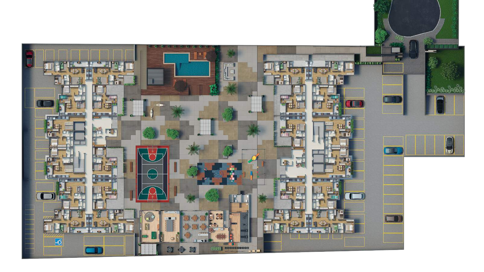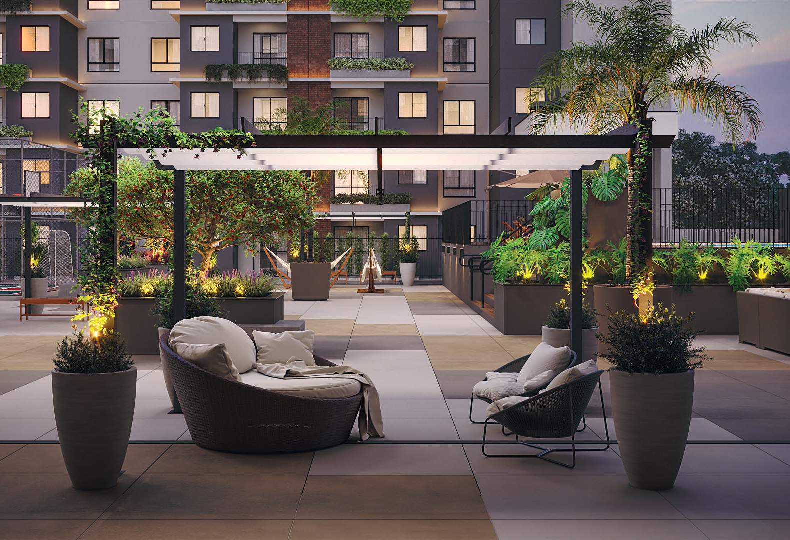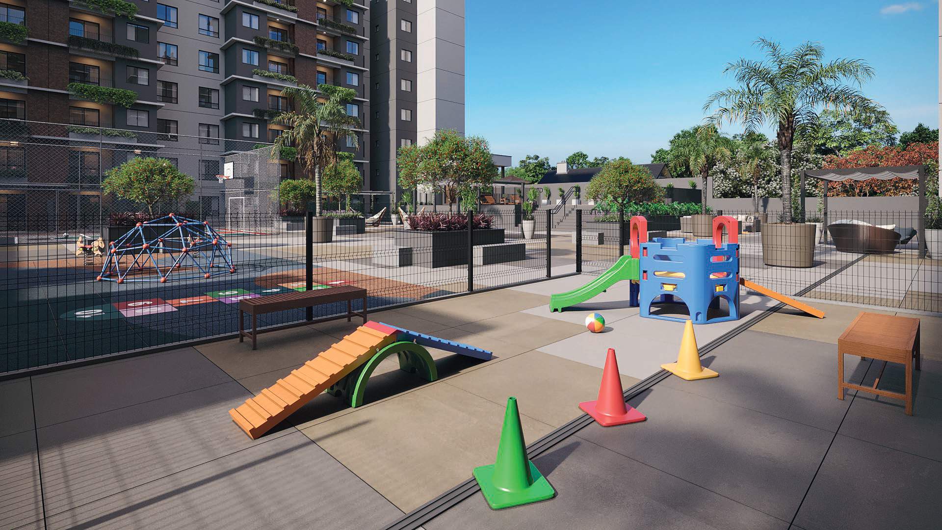 A área comum foi pensada para integrar lazer, convivência e bem-estar: salão de festas, espaço gourmet, coworking, bicicletário, lavanderia compartilhada, espaço fitness e rooftop com área de convivência. Tudo isso em um ambiente moderno e seguro, com sistema de controle de acesso.