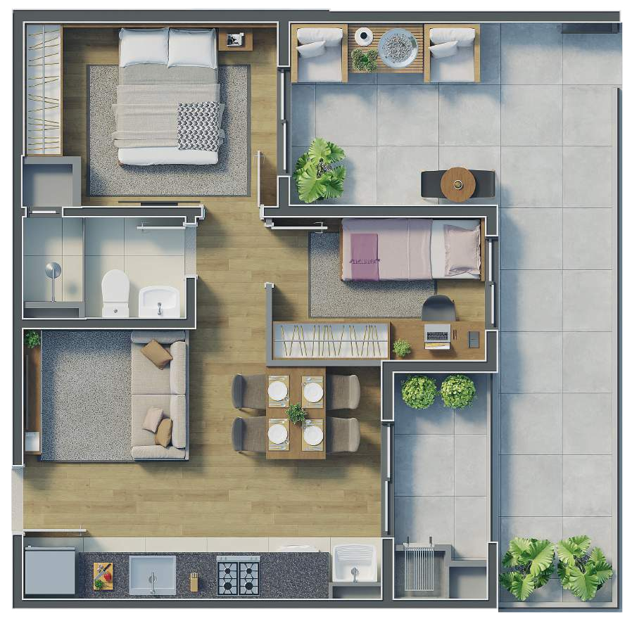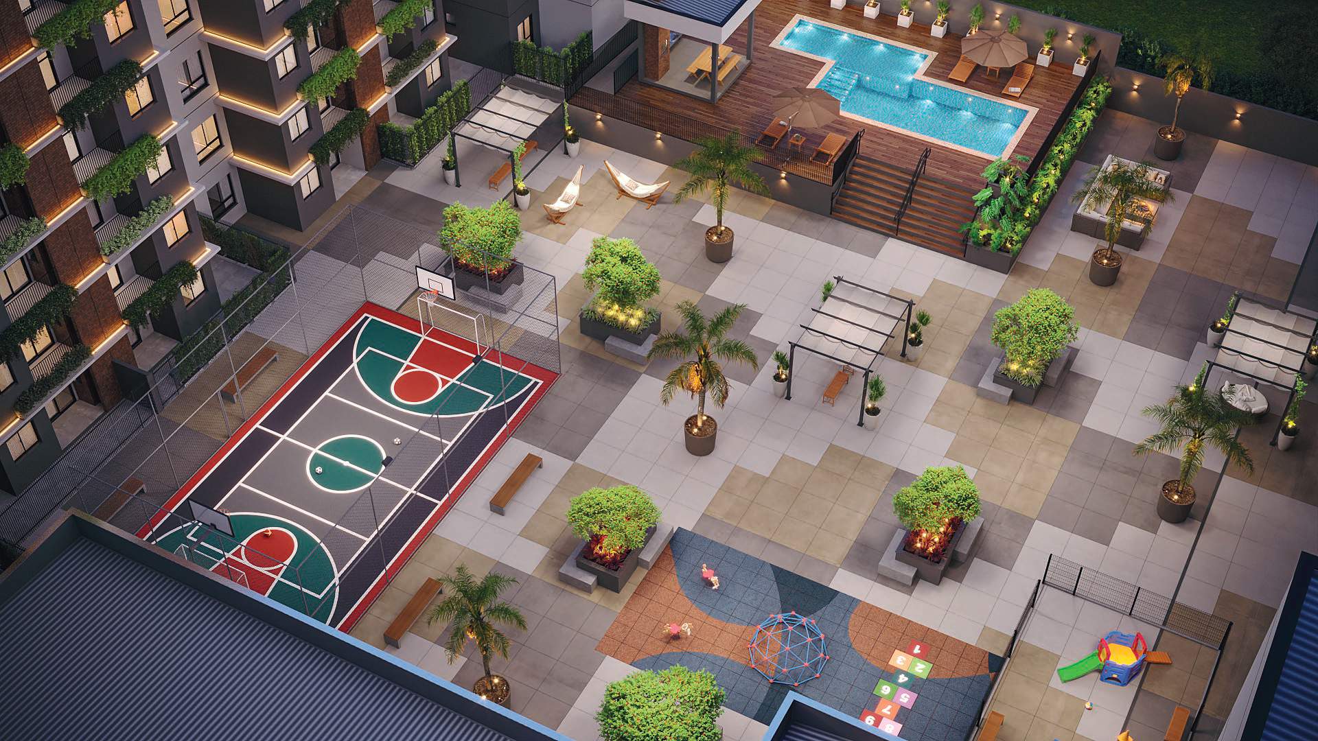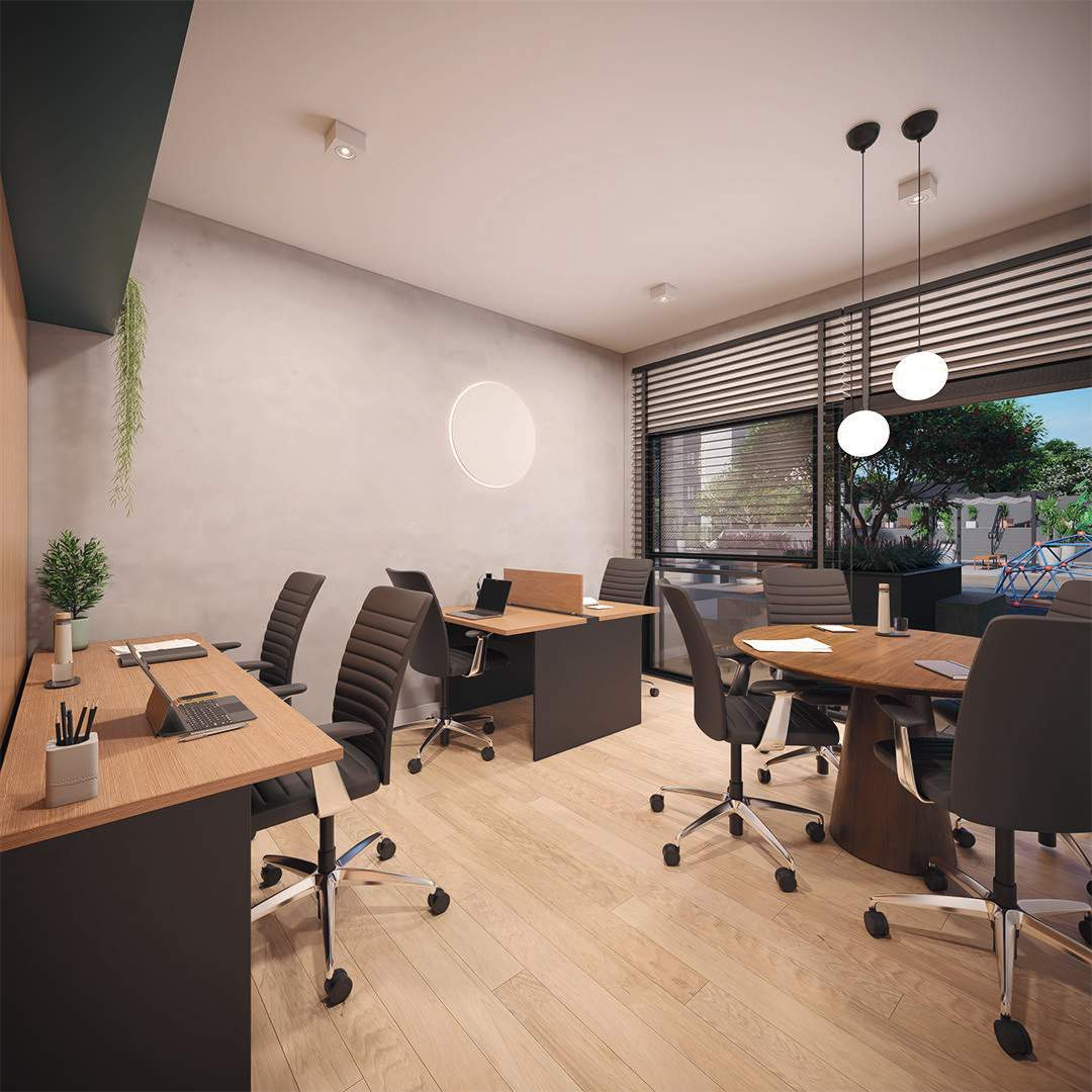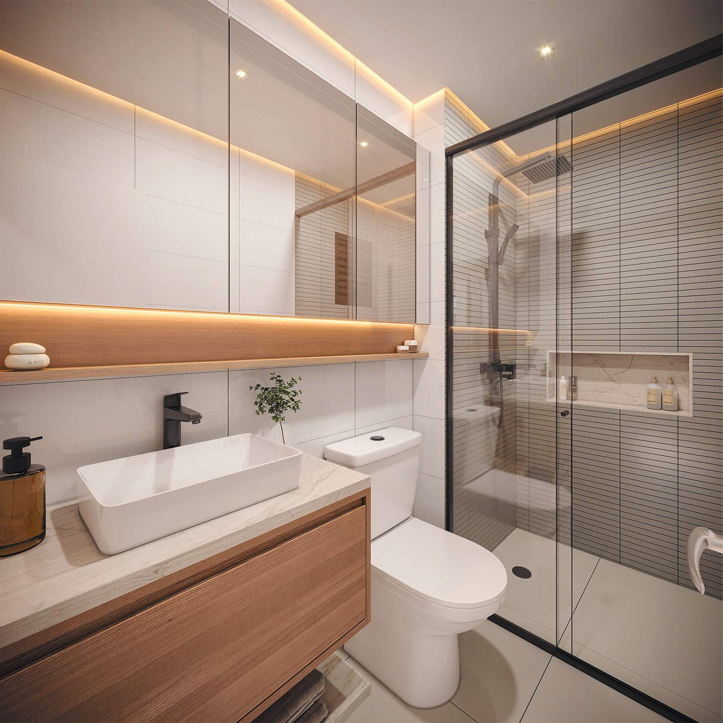 A área comum foi pensada para integrar lazer, convivência e bem-estar: salão de festas, espaço gourmet, coworking, bicicletário, lavanderia compartilhada, espaço fitness e rooftop com área de convivência. Tudo isso em um ambiente moderno e seguro, com sistema de controle de acesso.