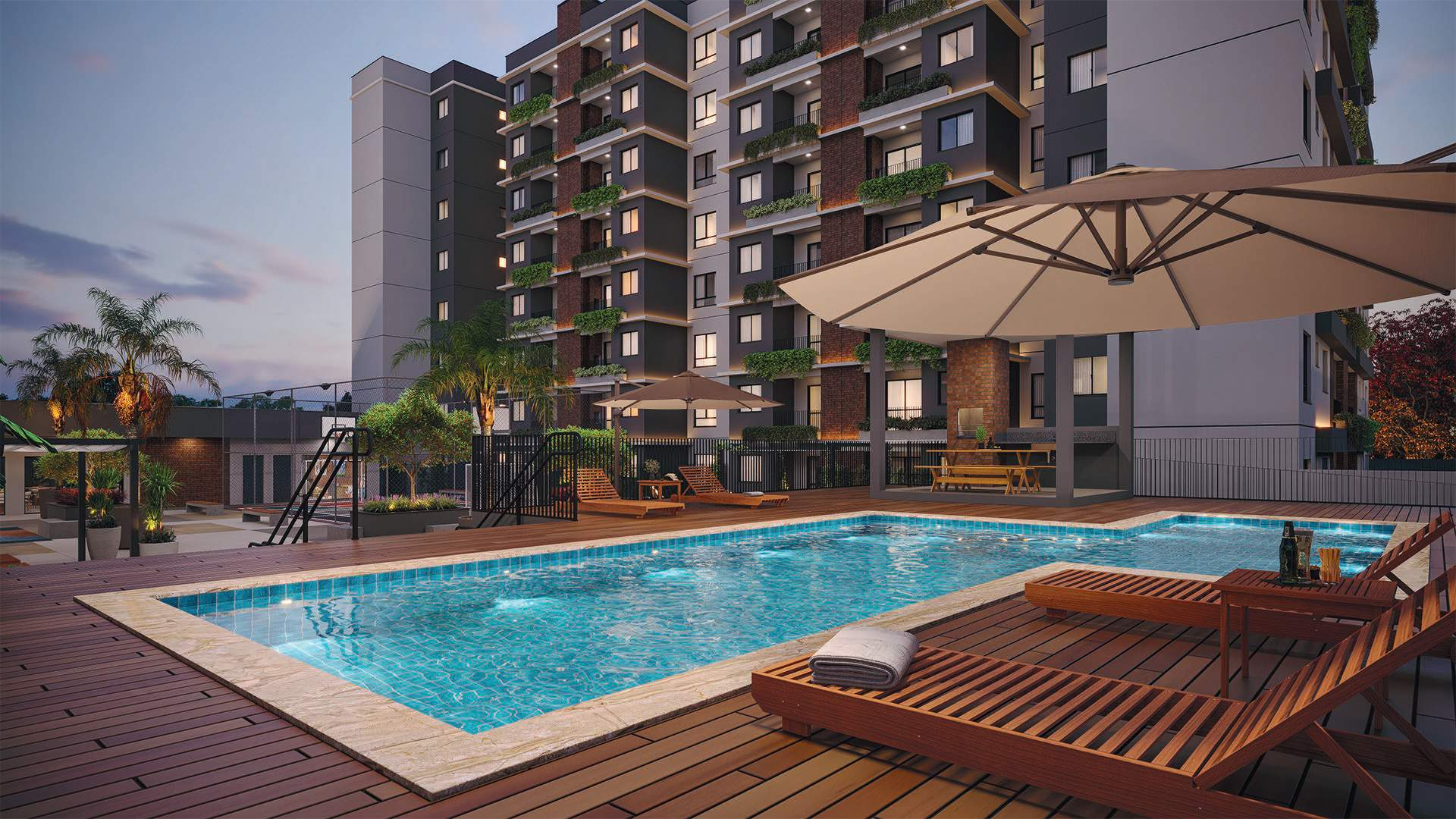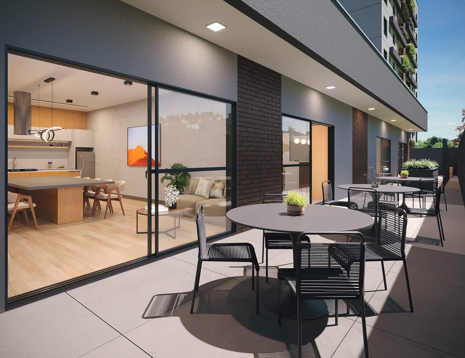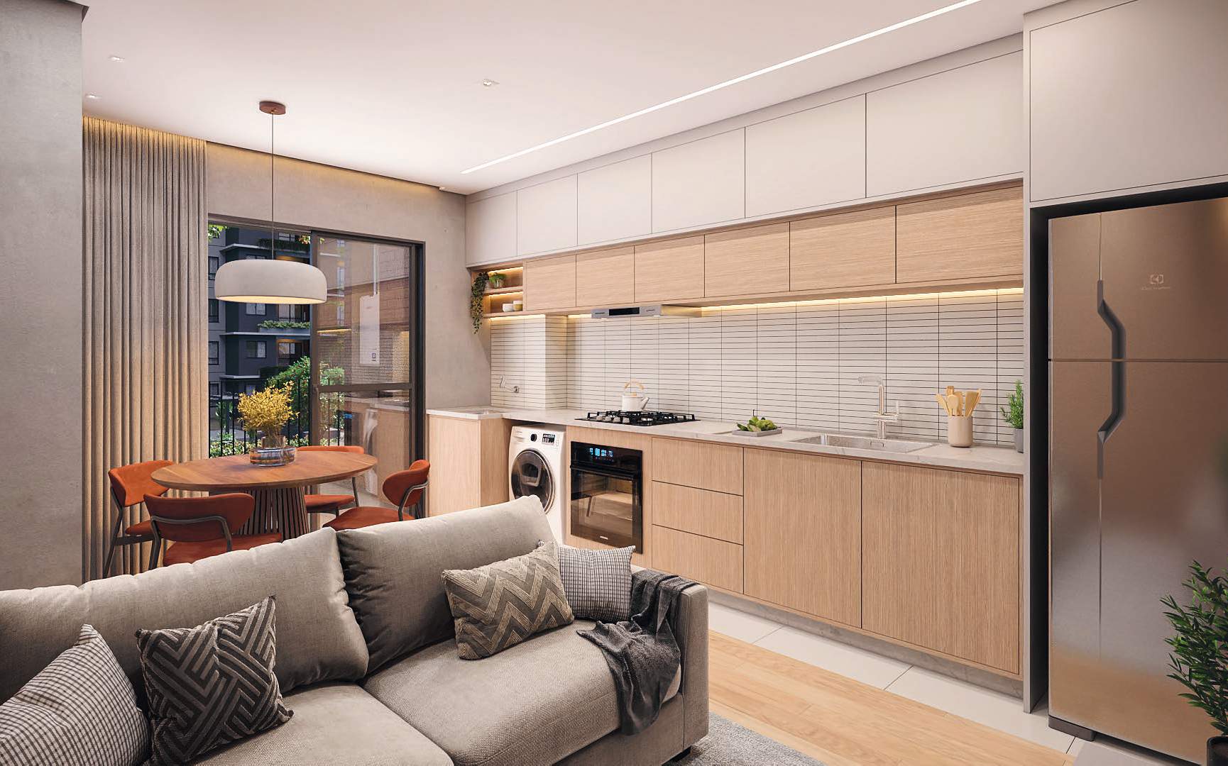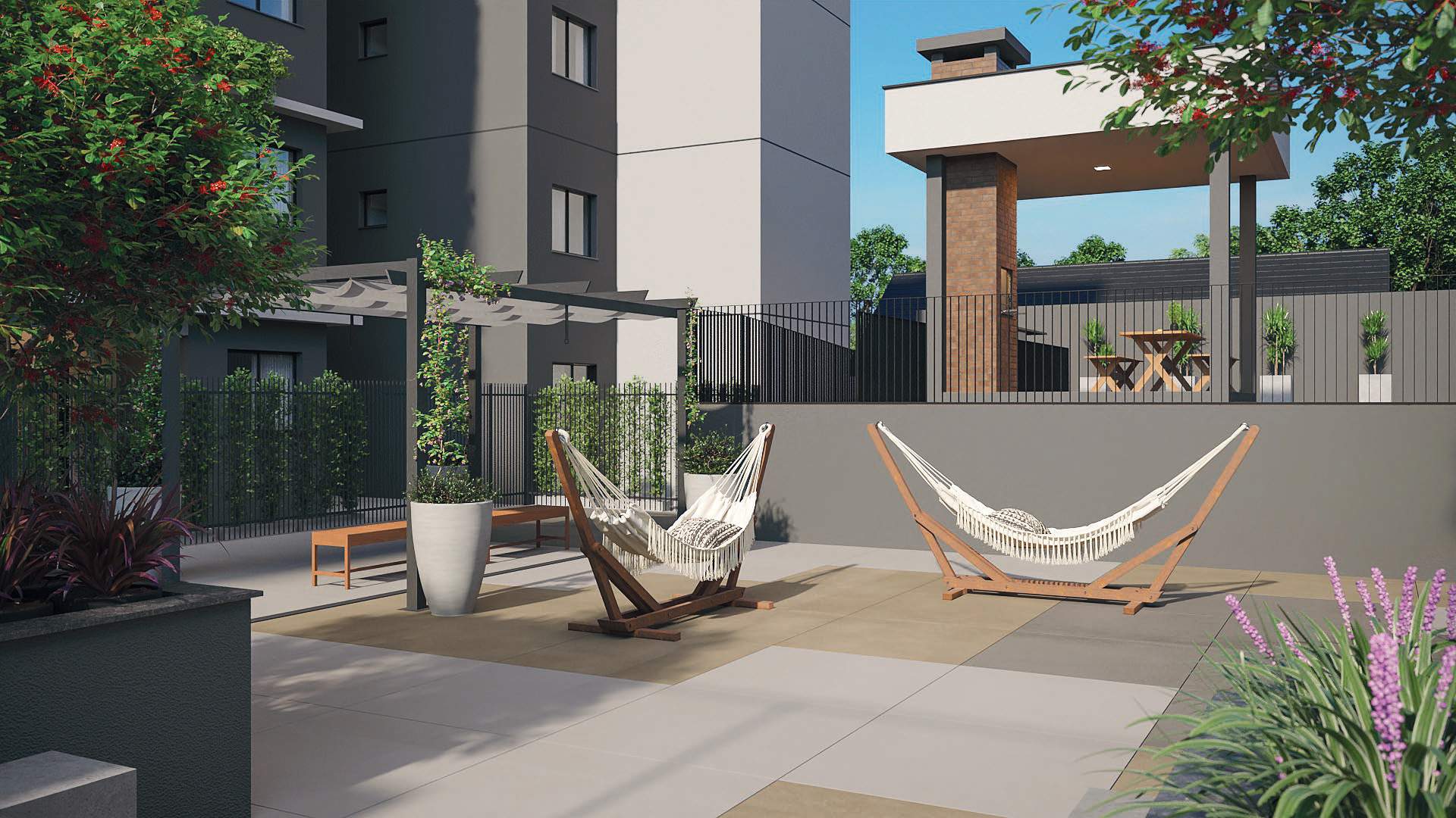 São apartamentos de 1 e 2 dormitórios, com metragens que variam entre 33 m² e 58 m², todos com plantas inteligentes e ambientes bem distribuídos. Algumas unidades contam com garden privativo, enquanto outras oferecem sacada com churrasqueira, garantindo opções que se adaptam a diferentes estilos de vida.